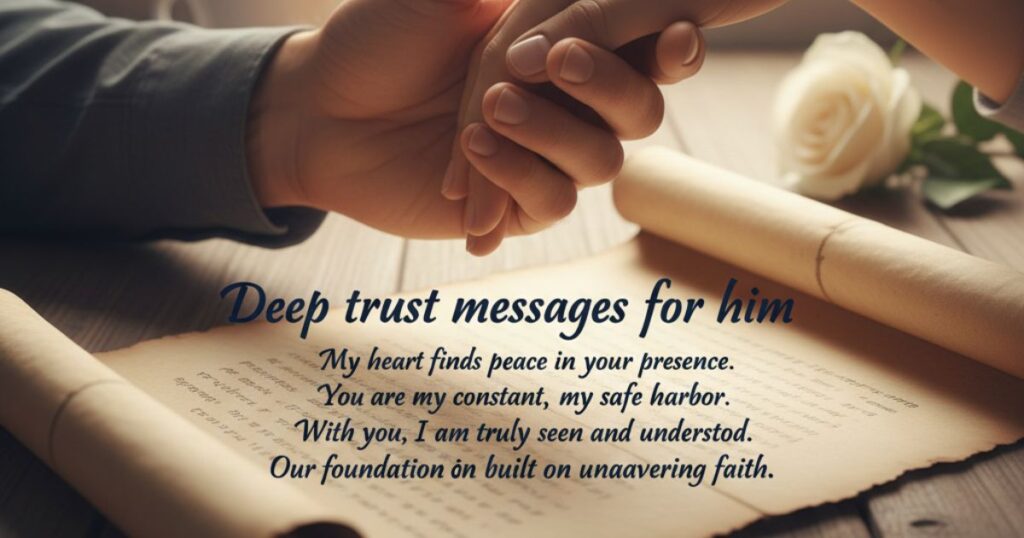 Trust messages help reassure your partner of your faith in them. They strengthen emotional intimacy, reduce insecurity, and remind him that your bond is safe and valued.